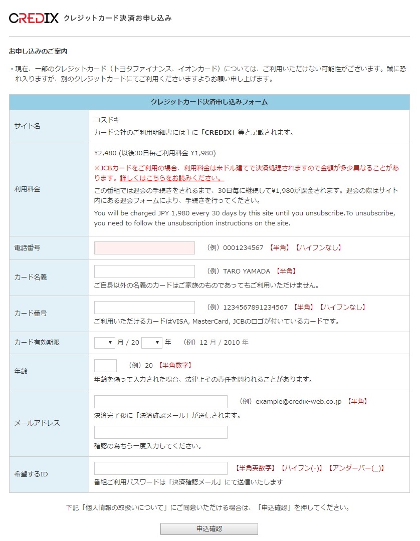 なお、私たちユーザーの個人情報は「コスドキ」へは伝わりません。なぜなら、決済代行会社のCREDIX社が安全に保護してくれるためです。