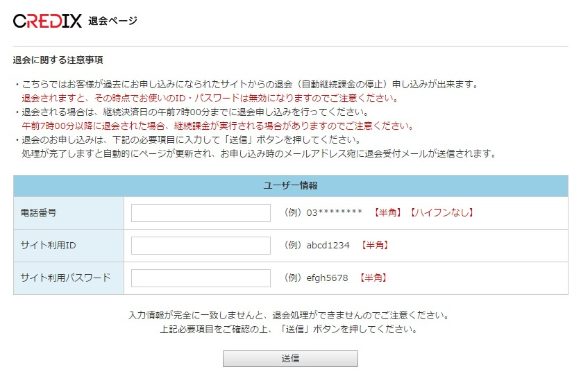 記入し終えたら、「送信」ボタンをクリックします。